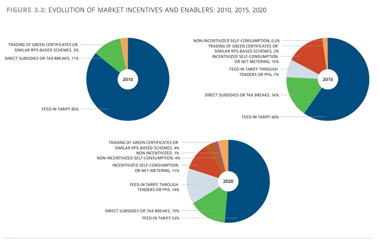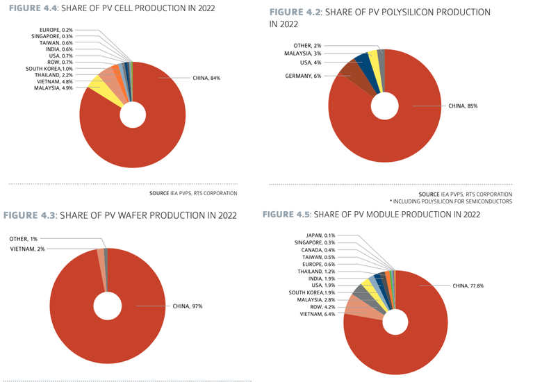 Alors que la demande européenne dépassait les 90 % du marché mondial du photovoltaïque en 2010, elle n'en représente plus que 13 % en 2023. La demande se concentre d'abord en Chine, qui représente à elle seule plus de la moitié des nouvelles capacités installées en 2023, suivi par l'Union européenne, les USA (env. 6%) et l'Inde (env. 2%).