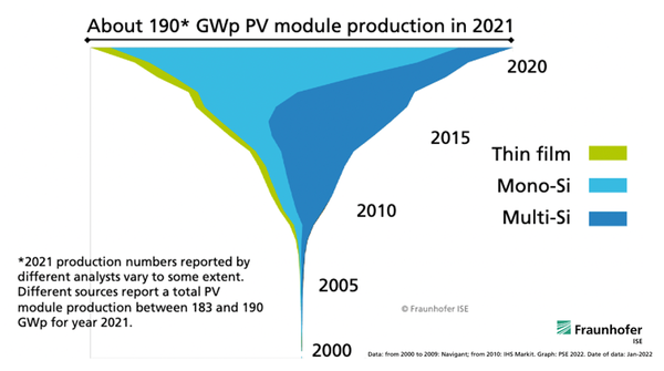 Les technologies cristallines à base de silicium (multicristallin et monocristallin) sont de loin les plus utilisées aujourd’hui mais les technologies "couches minces", en particulier CIS et CdTe se développent sur certains marchés spécifiques. D’autres filières basées sur l’utilisation de colorants ou de matériaux organiques, encore à leur balbutiements, promettent un bel avenir à l’énergie photovoltaïque.